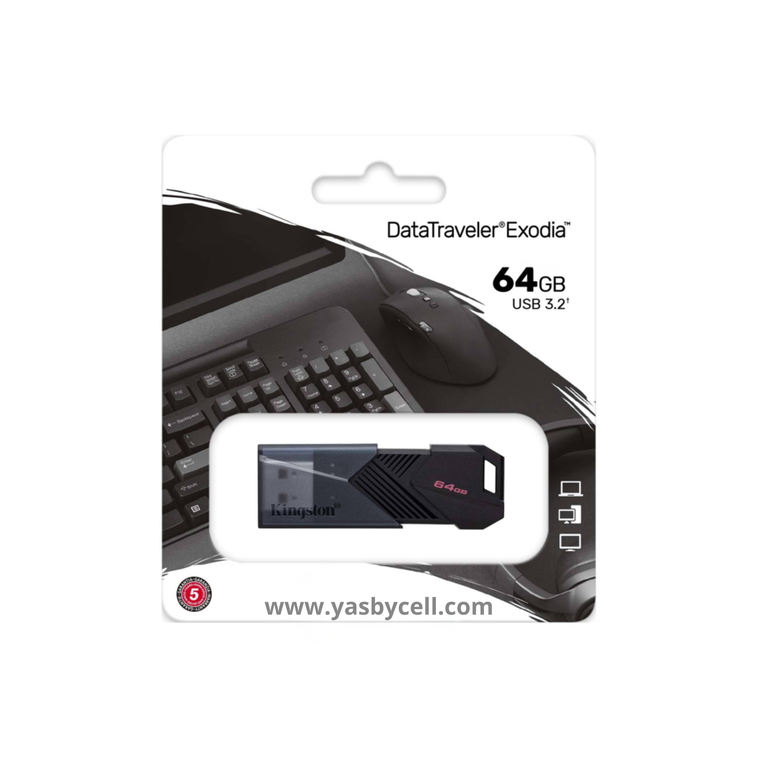 Memoria USB 64 GB con interfaz USB 3.2 en color negro, ideal para almacenar y transferir archivos de forma rápida y confiable entre dispositivos.
