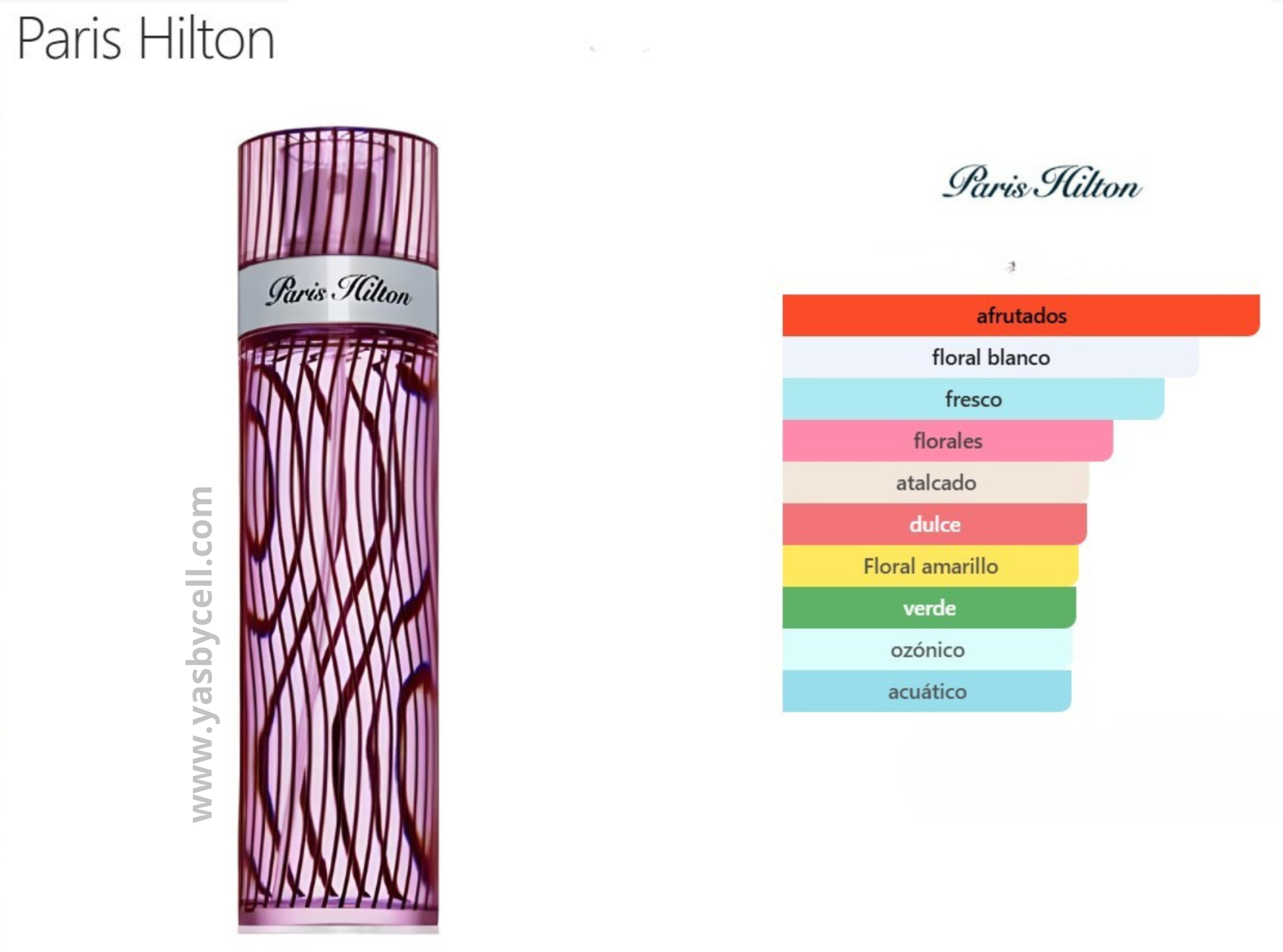 Paris Hilton es un perfume creado por Paris Hilton que busca capturar su personalidad glamurosa, divertida y moderna. Esta fragancia se caracteriza por una mezcla equilibrada de notas dulces, florales y frutales, pensadas para un público joven y sofisticado.